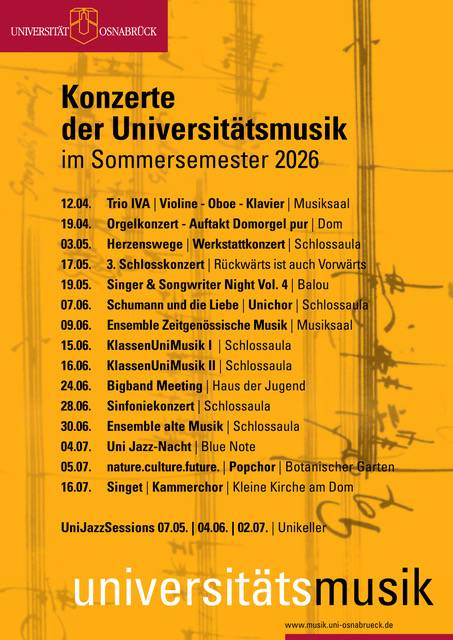 Die Universitätsmusik ist ein Angebot von Lehrenden und Studierenden des Instituts für Musikwissenschaft und Musikpädagogik der Universität Osnabrück.